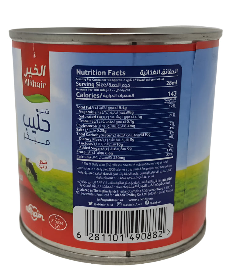Upgrade your kitchen essentials with Alkhair Arabic Evaporated Milk, the perfect ingredient for rich and flavorful recipes
