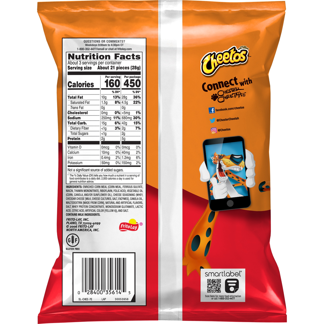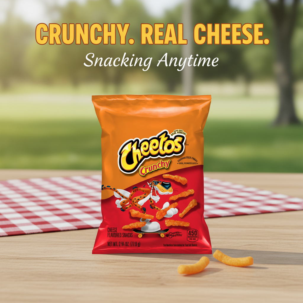 Unleash the iconic taste and texture of Cheetos Crunchy Cheese Flavored Snacks! Each 2.75 oz bag is packed with the vibrant, bold flavor of real cheese that Cheetos fans have loved for generations. Experience the ultimate snack satisfaction with every irresistibly crunchy bite, delivering that signature cheesy dust that makes snacking so much fun. Perfect for satisfying those midday cravings, adding excitement to your lunchbox, or sharing at parties. Cheetos Crunchy are guaranteed fresh until the printed date, ensuring you get the best quality and flavor with every bag. Grab a bag and get ready for a dangerously cheesy experience!