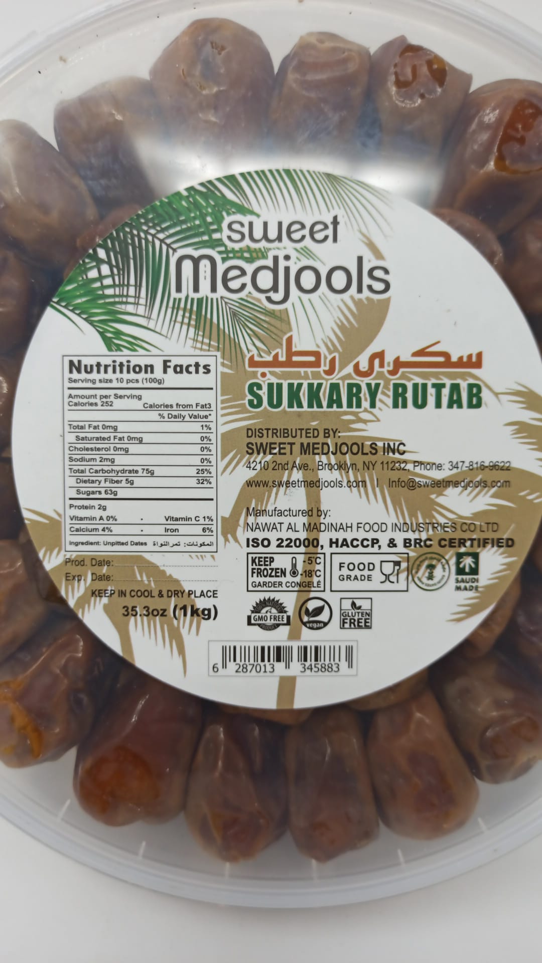 SUKKARY RUTAB 35.3OZ (10X1KG) sweet medjools UPC 6287013345883