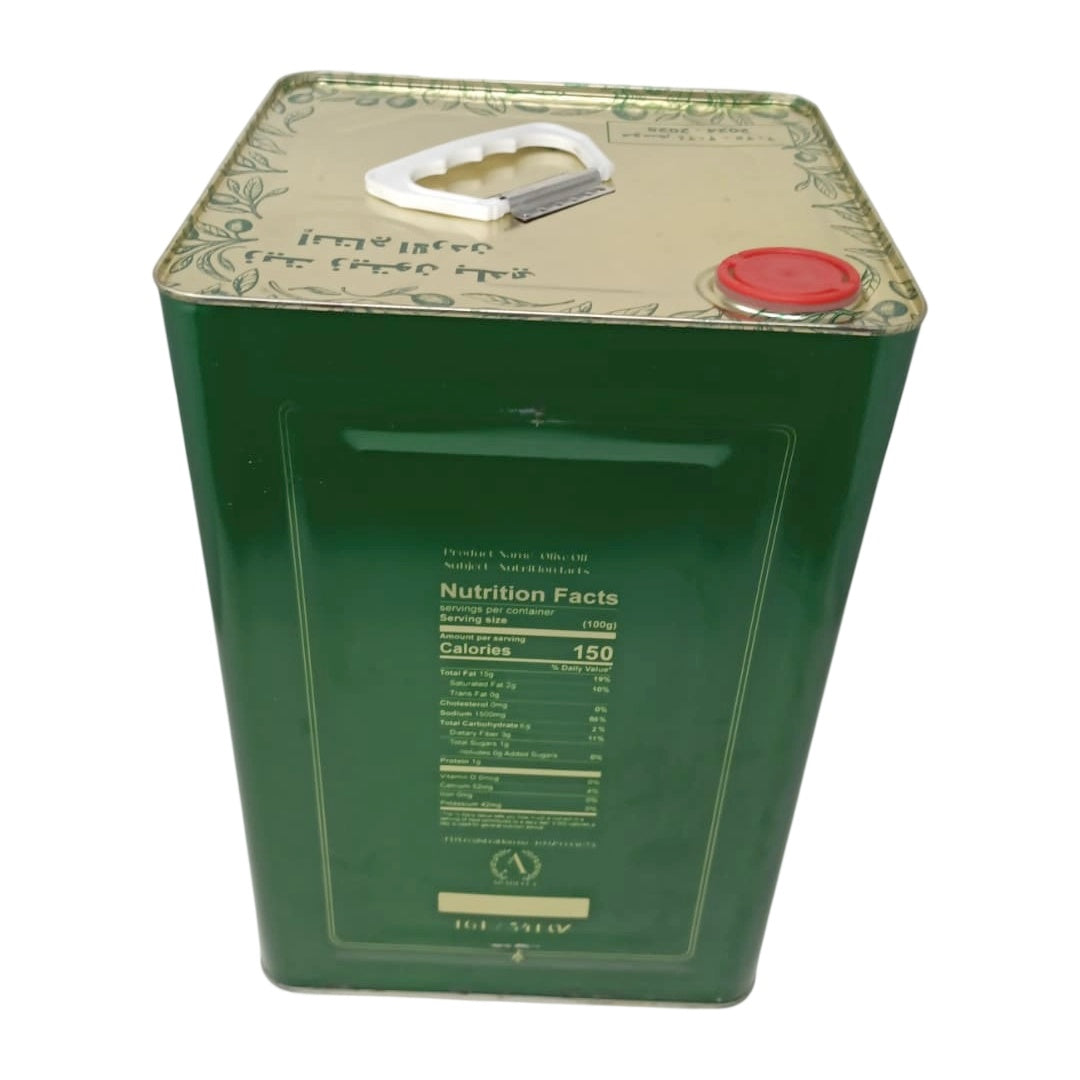 Discover the authentic taste of Jordan with Diyar Organic Extra Virgin Olive Oil, directly from the fertile lands of Irbid. Crafted with generations of expertise, our olive oil is a testament to purity and superior quality. Sourced from the finest olives, our oil undergoes a meticulous first cold press extraction process. This crucial step ensures that every drop retains its natural goodness, vibrant flavor profile, and precious nutrients. The result is an exceptionally fresh olive oil with an ultra-low acidity of less than 0.3%, a hallmark of its unparalleled quality and mild, balanced taste. Diyar Extra Virgin Olive Oil is not just an ingredient; it's an experience. Its rich, fruity aroma and smooth finish make it perfect for a myriad of culinary applications. Use it to elevate your gourmet cooking, create vibrant salad dressings, craft savory marinades, or simply enjoy it as a wholesome dipping oil with crusty bread. Packed in a generous 16L (541 oz) tin, it provides a long-lasting supply of this liquid gold for your home or professional kitchen. Embrace a healthier lifestyle and infuse your meals with the health benefits of authentic extra virgin olive oil, rich in monounsaturated fats and antioxidants. Choose Diyar for a taste of tradition and excellence.