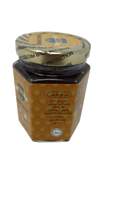 Unlock the “Secret of Men’s Strength” with this artisan blend of pure date paste and Sidr honey, enriched with royal pollen granules, black seed (Nigella sativa), and a touch of ginger. Gently stirred into a silky spread, it delivers layers of deep caramel and floral honey notes, bright spice and a hint of nutty pollen crunch. Perfect for a teaspoonful in the morning, drizzled on yogurt, swirled into oatmeal or enjoyed straight from the spoon. No additives, no preservatives—just wholesome ingredients you can see and taste.